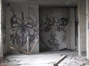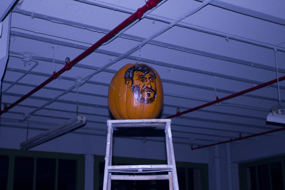 I didn’t really know what I was getting into. This was definitely some Brooklyn, hipster, arty, loft party. There were projections, pumpkins, half-nekked women with paint on them walking around. Hipsters. Thug hipsters. People who looked out of place. Someone collapsed and the medics were called in. I met a guy in a blue robe.