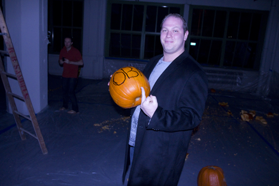 The dude in the blue robe, the coordinator of the event, and a distance relative of a famous lawyer called me over for a “photo op”. He was smashing pumpkins. No, not those Pumpkins.